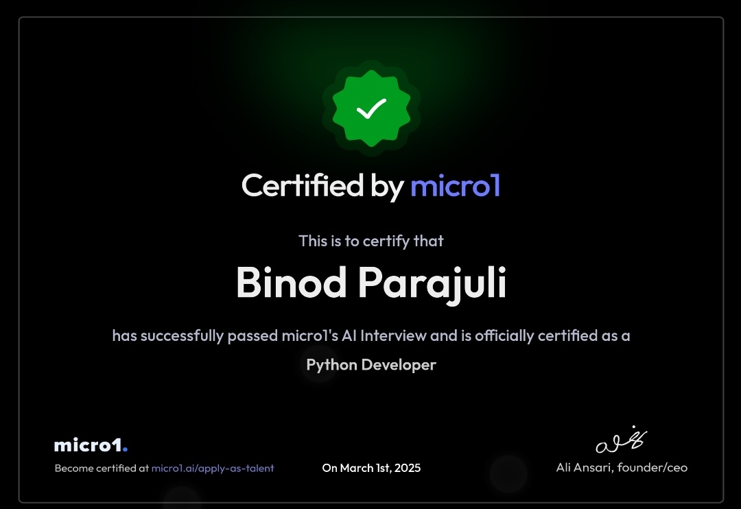Experienced Python Developer with nearly 4 years of expertise in building scalable applications using Django and Python. Proficient in REST API development, cloud deployment (AWS), and containerization (Docker). Skilled in optimizing performance, automating workflows, and collaborating with cross-functional teams to deliver high-quality software solutions